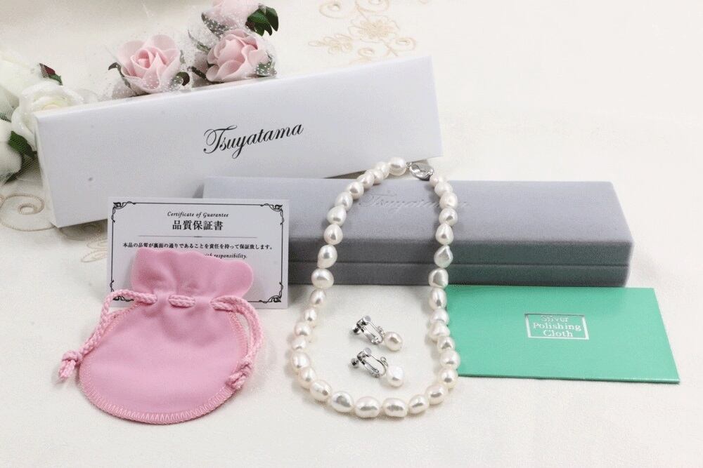 送料無料 バロックパールネックレス&パールピアスorパールイヤリングセット 大粒 10-10.5mm(本真珠ネックレス 真珠イヤリング 真珠ピアス フォーマル 結婚式 卒業入学 冠婚葬祭 七五三)