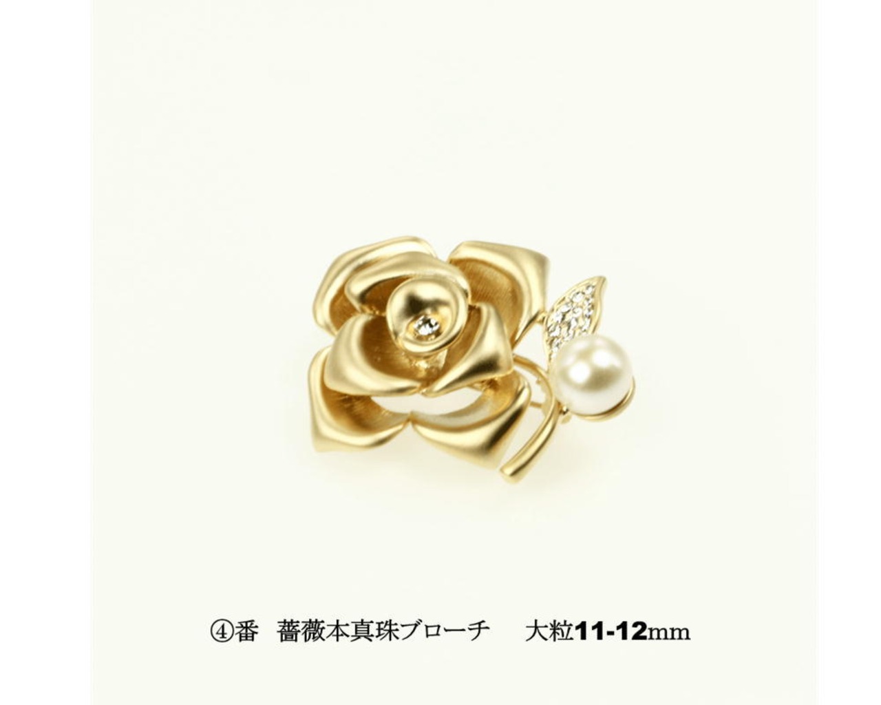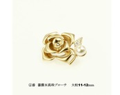 ④番 薔薇ブローチ ■真珠のサイズ/形: 11-12mm・ボタン型 ■グレード/照り、つや共に非常に強い ■他材質/真鍮(金メッキ仕上げ)